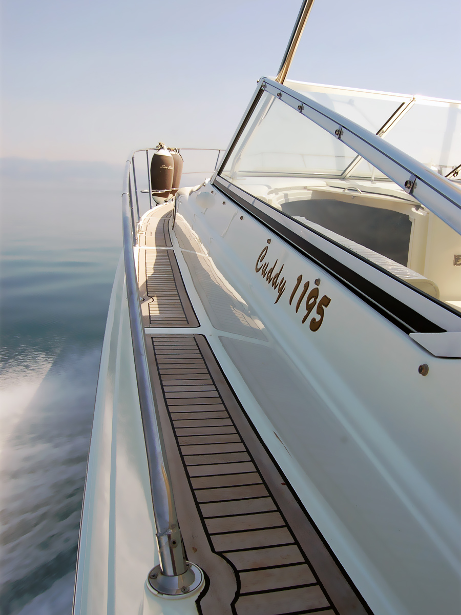 Evinizdeki konforu, denizde de yaşayacaksınız. Cuddy serisinin en büyüğü 11.95 Cuddy, birbirinden ferah iki kamarası ve kullanışlı havuz dizaynı ile kalabalık aileler için ideal bir motoryat. Konfor, güven ve performans. Suyun üzerindeki konforunuzu en keyifli şekilde yaşamanızı ilke edinerektasarlanan 11.95 Cuddy, 8 kişilik havuz masası ve standart olarak sunulan elektrikli barbeküsü ile açıkhava ziyafetlerinize ev sahipliği yapacak.53 millik maksimum sürati ise, kelimelerle tarif etmek imkansız.